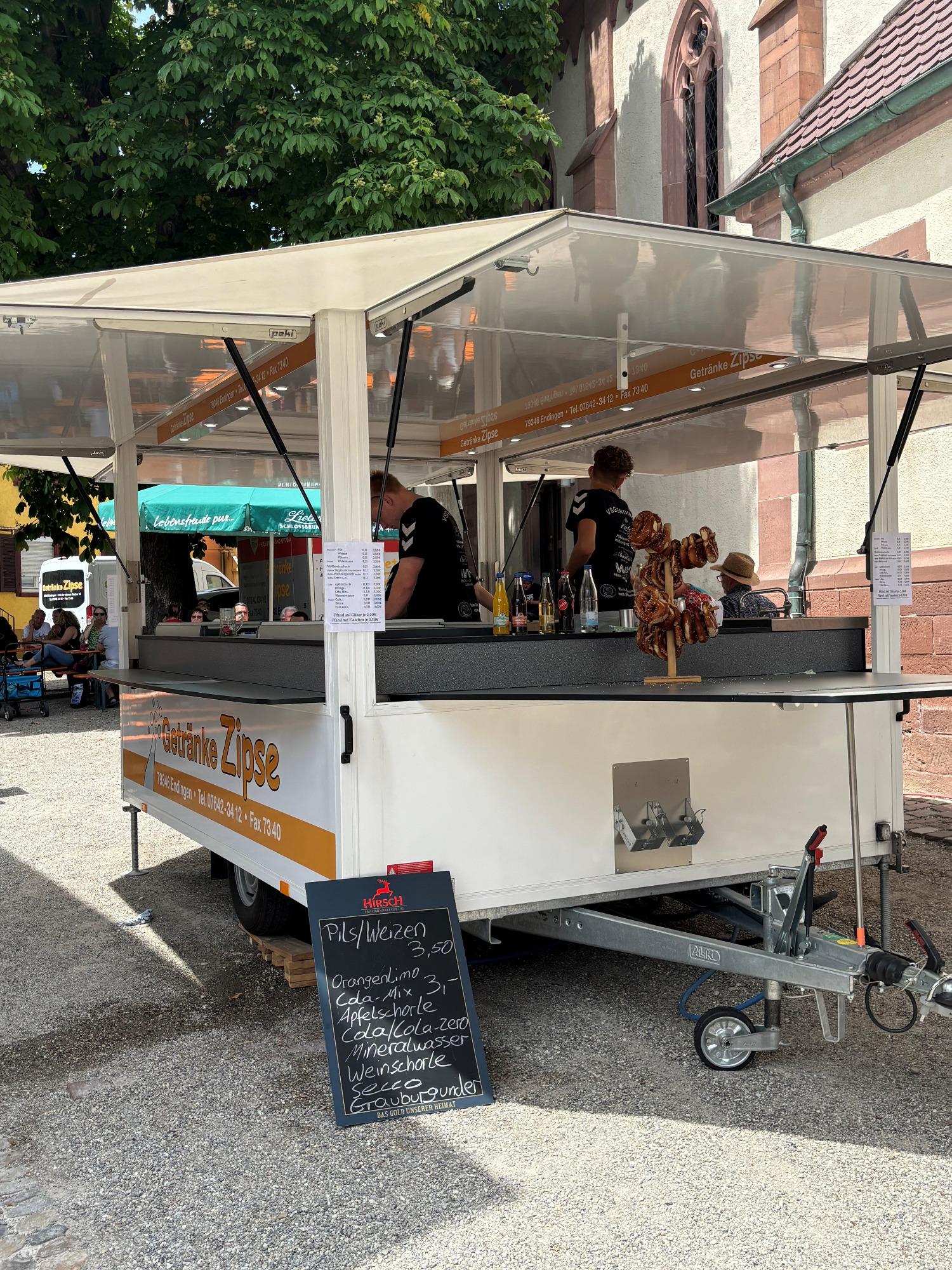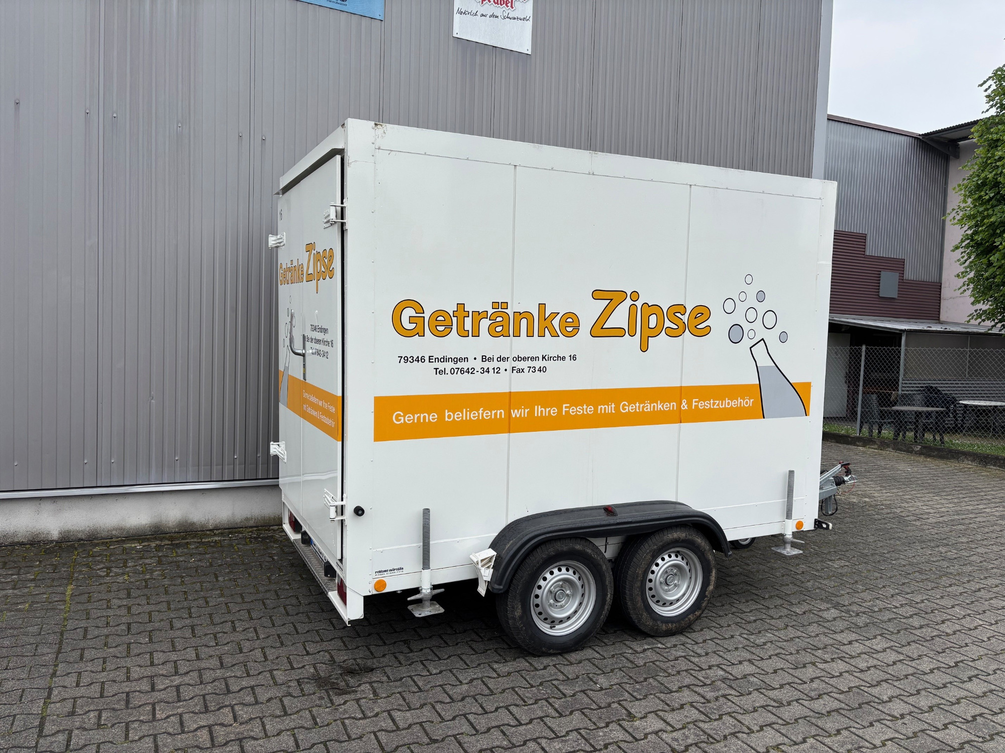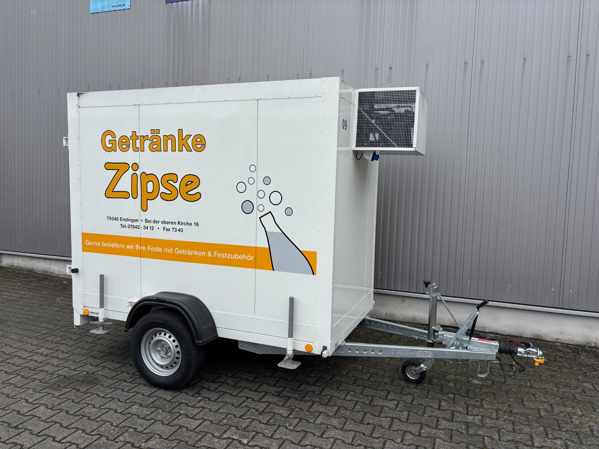 Unser Kühlwagen mit LKW-Deichsel ist ideal für große Veranstaltungen mit hohem Getränkeaufkommen im Raum Endingen am Kaiserstuhl.